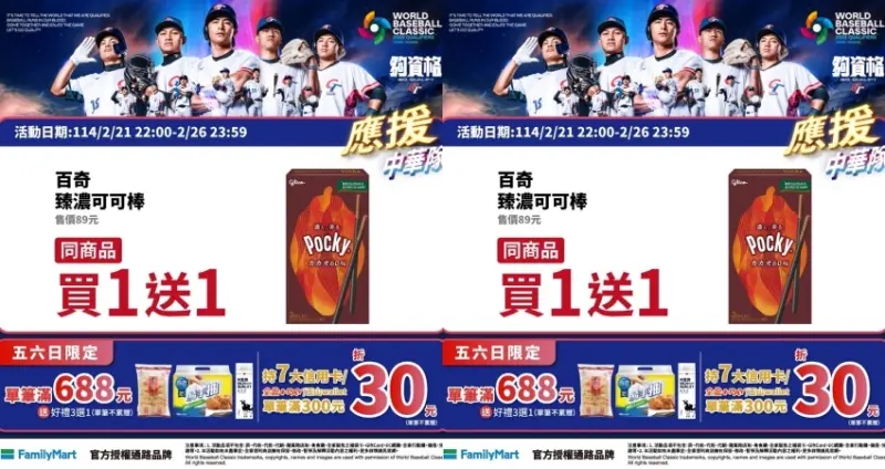 ▲中華隊差點被扣倒!我們全家挺台灣隊搶首勝,全壘打買一送一搶先看 / 全家提供、WalkerLand窩客島整理