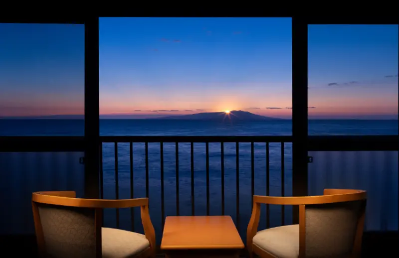 鶴屋吉祥亭佇立在懷舊寧靜的港町北川溫泉海濱,可欣賞海洋與伊豆大島的全景。飯店內提供自家源泉直流的溫泉,以及無限供應的炸天婦羅會席料理。鶴屋吉祥亭客房內更可直接觀賞海上日出與夜晚的滿月,非常風雅。配合2025年早開的河津櫻花,鶴屋吉祥亭正在舉辦「鶴屋櫻花祭」。在露台除了提供烤魷魚與當地的日本酒,還會招待期間限定的櫻花道明寺(櫻餅)。此外,就寢前的甜點時間也會準備紅豆湯與櫻花甘酒。![]()