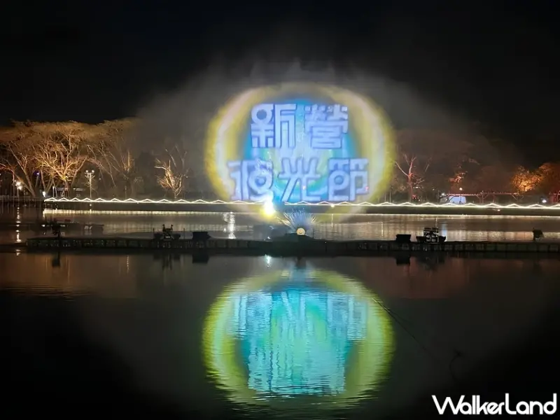 ▲新營波光節帶來更具現代感的光影藝術,湖畔水幕投影搭配音樂與燈光,營造出夢幻的視覺效果 / 臺南市觀光旅遊局提供、WalkerLand窩客島整理