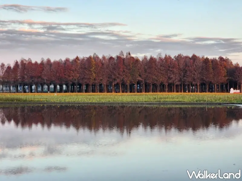 ▲六甲落羽松森林在幾波寒流與春雨的催化下,樹葉轉為鮮豔的橙紅色 / 臺南市觀光旅遊局提供、WalkerLand窩客島整理