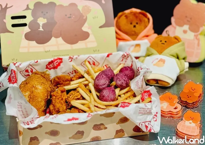 ▲台南炸雞現場聯名IP布朗尼,推出熊熊主題聯名套餐 / 布朗尼提供、WalkerLand窩客島整理![]()