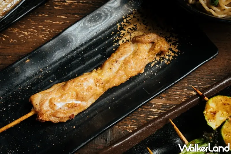 ▲雞腿肉串嚴選鮮嫩雞腿肉,經特製醃料醃製入味,先炸後烤的製作手法,讓外皮酥脆,內裡多汁 / 柒息地提供、WalkerLand窩客島整理