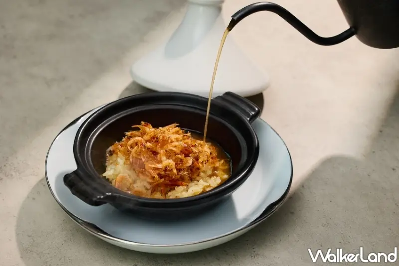 來到主食,「櫻花蝦御飯」堪稱海味控必點。選用東港產地直送的櫻花蝦,蝦香濃郁到每一口米飯都像在海裡打滾過一樣,再加上龍蝦與柴魚高湯的加持,整碗飯的鮮甜層次直接爆棚。酥炸櫻花蝦的脆口感更是亮點,讓整道料理有了雙重食感,一口氣吃完還會意猶未盡。