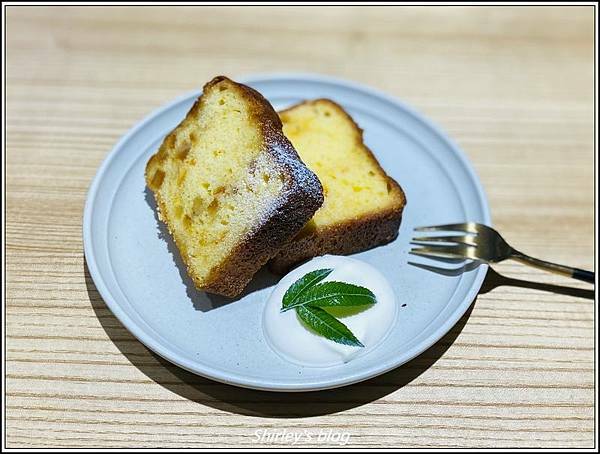 磅蛋糕加熱後搭配一大球鮮奶油,熱度讓鮮奶油半溶化沁入蛋糕體中增加濕潤度,吃起來柔軟沒有磅蛋糕常見的乾澀缺點,蛋糕本身甜度略甜偏向螞蟻人取向,幾乎每一口都可以品嘗到洋梨果肉。