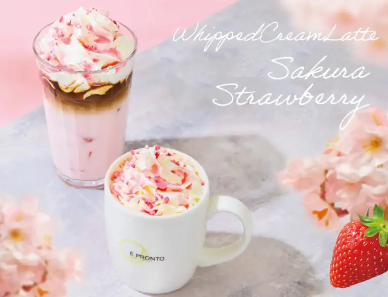 PRONTO推出「櫻花蕨餅拿鐵」,將櫻葉蕨餅、櫻花牛奶和濃縮咖啡層層堆疊,頂部加上P字形餅乾、鮮奶油、櫻花巧克力和鹽漬櫻花。這款飲品視覺上呈現盛開櫻花的效果,既是飲品也是甜點。中杯售價715日圓,大杯803日圓。同步也推出了「櫻花奶茶」,將櫻花香氣添加到錫蘭茶中,再加入蒸煮的櫻花風味牛奶,大杯售價550日圓。如果你準備在3、4月前往日本自助,記得將這些飲品加入你的必喝清單!![]()