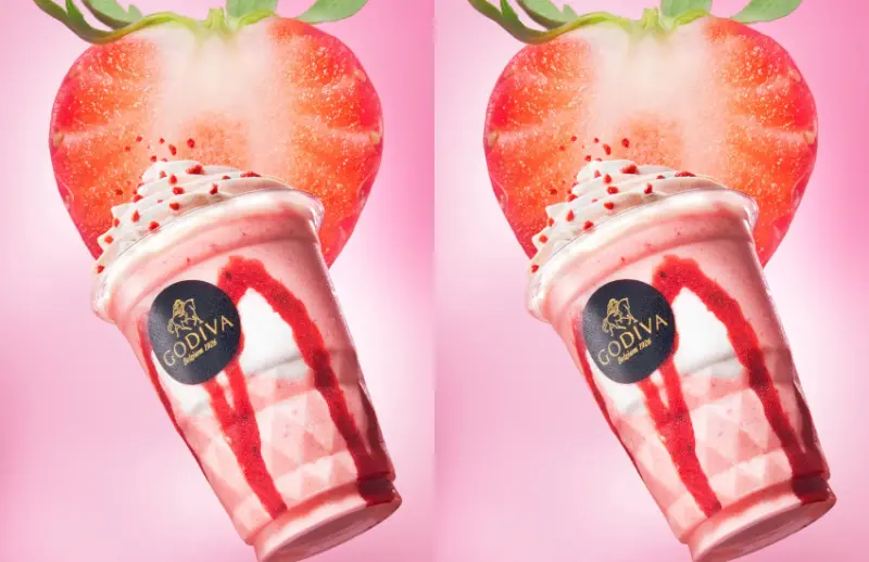 GODIVA將於2025年3月15日推出春季新品「草莓巧克力冰沙」。這款飲品結合白巧克力與草莓醬,創造出類似草莓牛奶的風味體驗。產品特點在於白巧克力的奶香與草莓醬的酸甜完美融合,頂部裝飾鮮奶油和草莓糖粉增添層次。GODIVA還特別加入草莓碎片,強化整體草莓風味,讓每口都充滿春天氣息。標準杯(270ml)售價860日圓,大杯(350ml)則為970日圓。![]()