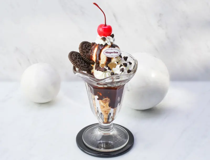 這款聖代使用了兩層哈根達斯香草冰淇淋,再搭配兩種可可餅乾和鮮奶油。最後,聖代頂部也有櫻桃,以此營造出傳統咖啡館的氛圍。這款聖代展現了哈根達斯冰淇淋的品質與聖馬可咖啡的創意,必點!售價740日圓(含稅)。所有商品的販售至4月3日,可能會提前結束販售,記得及早朝聖!![]()