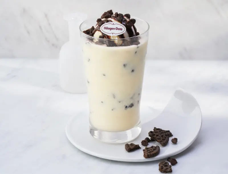這款冰沙結合了香草風味的牛奶冰沙與哈根達斯香草冰淇淋。冰沙中添加了脆脆的可可餅乾,頂部則放了滿滿一球哈根達斯香草冰淇淋,最上面還有可可餅乾和巧克力醬。飲品使用了布丁當作基底,因此你能夠同時品嚐到卡士達的風味與豐富的香草味。這是一款適合春季享用的冰涼甜品。中杯售價720日圓(含稅)。![]()