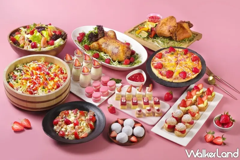 ▲饗聚廚房則以草莓為主題,推出「春之饗宴美食節」,自3月17日至4月13日限定登場,將酸甜多汁的草莓結合各國料理 / 台北花園大酒店提供、WalkerLand窩客島整理
