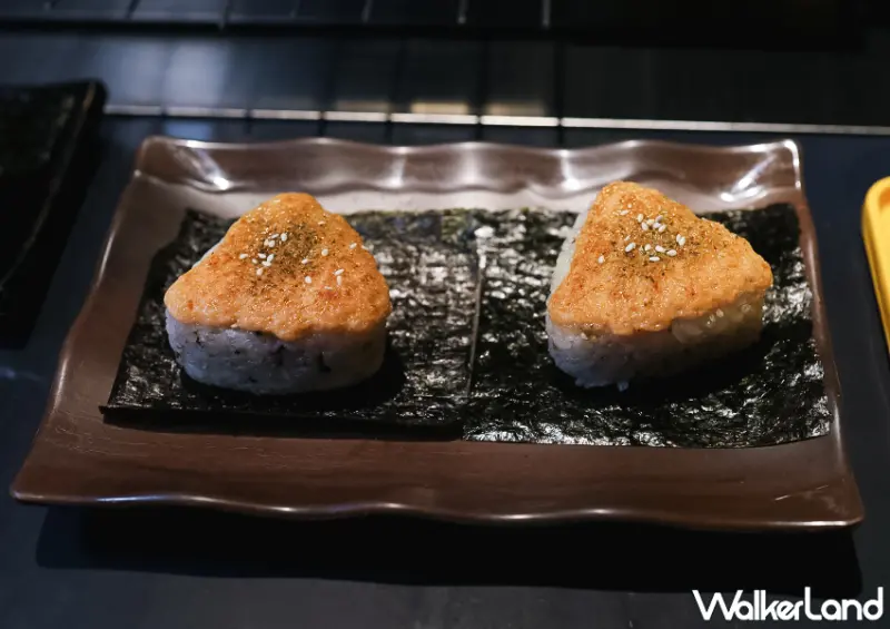 ▲中山站串燒店「一起烤串」推薦菜單:明太子烤飯糰 $99 / WalkerLand窩客島 蕭芷琳 拍攝