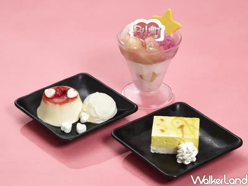 本次聯名甜點由B小町監修,打造三款超應援系甜品,每一款都融入角色特色與代表色。「最閃亮的白桃偶像聖代」靈感來自露比的紅寶石色,結合桃子冰沙與雪酪,搭配星星巧克力裝飾,購買還能獲得限量B小町造型插卡。「給你推的孩子煉乳牛奶布丁」以佳奈的白色應援色為主,雪白的牛奶布丁搭配草莓醬與心型棉花糖。「Hi MEM!鳳梨椰子冰淇淋蛋糕」則是MEM CYO的代表色,酸甜鳳梨冰淇淋搭配椰子達克瓦茲,層次豐富。