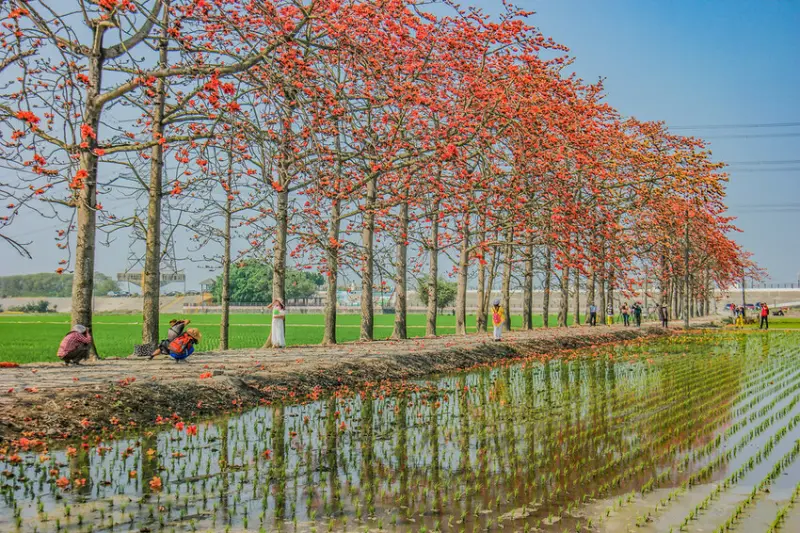 每年3月開始轉為橘紅色的「埤頭木棉花道」,就種在寬廣的田野鄉間旁,形成兩排高聳的橘紅花海,更是全台最長的木棉花道,想拍最壯觀的木棉花海景象就來這;另外,同樣種在田野旁邊的「竹塘木棉花道」,從不同角度觀賞都十分唯美,也是彰化必拍的木棉花花道。