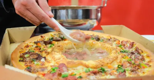 ▲必勝客攜手富錦樹台菜香檳、民生輝溫體牛肉鍋,推出新品私房紅燒牛比薩 / 必勝客提供、WalkerLand窩客島整理
