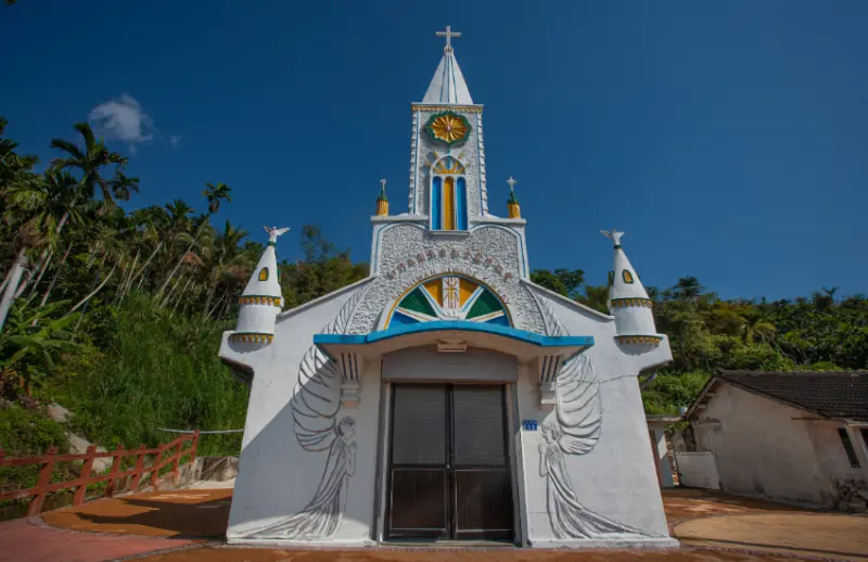 宜灣卡片教堂用有美麗的哥德式建築尖塔外觀,純白的外觀搭配彩繪和天使雕飾據說是參考聖誕卡片建造的,隸屬基督教長老教會;據說當年因為經費有限,所以僅有正面美麗的佈置,後方仍是鐵皮屋,因此有了「卡片教堂」的稱呼,是個蠻有趣的故事。