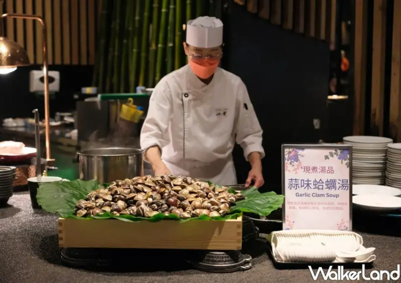 ▲欣葉日料吃到飽新菜必吃「蒜味蛤蠣湯」/ WalkerLand窩客島 鄭雅之 拍攝