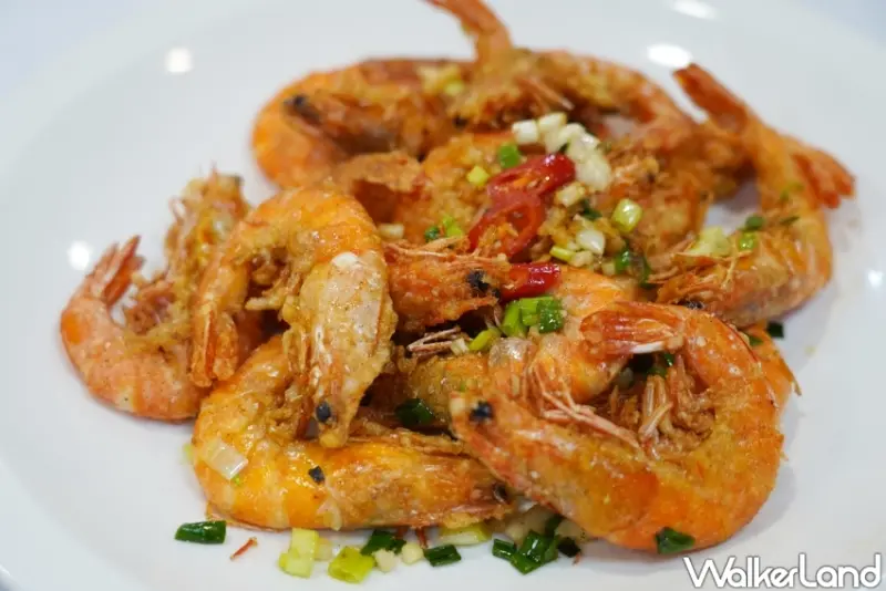 ▲瑞丘農莊的椒鹽大蝦鹹香涮嘴,讓人忍不住一口接一口/ WalkerLand窩客島 楊婷雅 拍攝