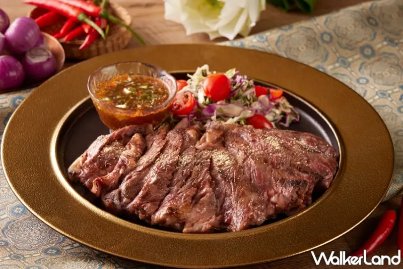 ▲「炭烤澳洲和牛佐泰式辣醬」則是饕客不可錯過的經典之選。選用M9級澳洲和牛,以炭火燒烤至外焦內嫩,保留肉質的鮮美與豐富油花 / 台北喜來登提供、WalkerLand窩客島整理