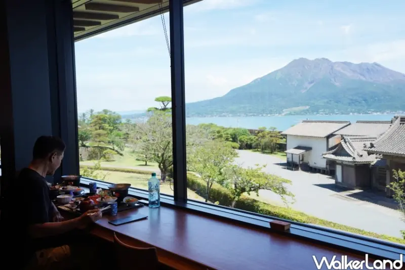 ▲在仙巖園園內的餐廳用餐,有活火山櫻島相伴/ WalkerLand窩客島 楊婷雅 拍攝