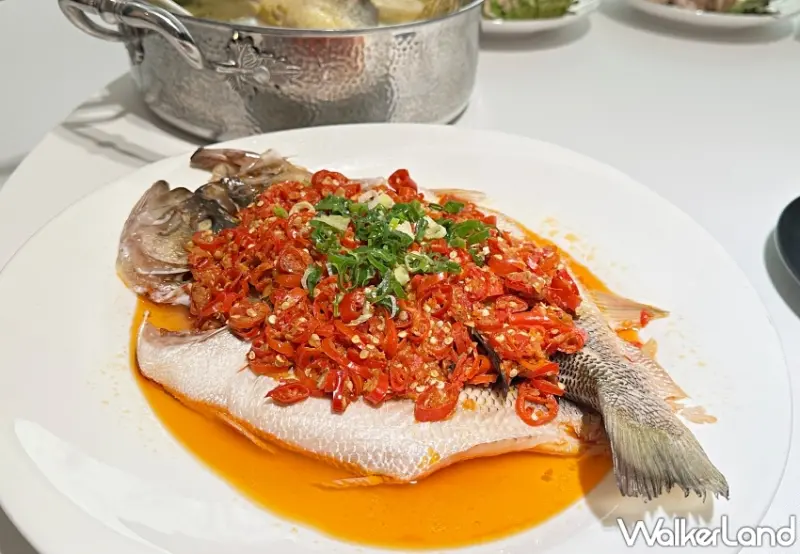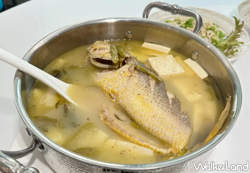 ▲「老鹹黃魚燉鮮筍」,選用鹹香濃郁的老鹹菜細火慢燉,完美襯托黃魚的鮮美與筍子的甘甜,使口感更顯醇厚 / WalkerLand窩客島編輯 李維唐 拍攝