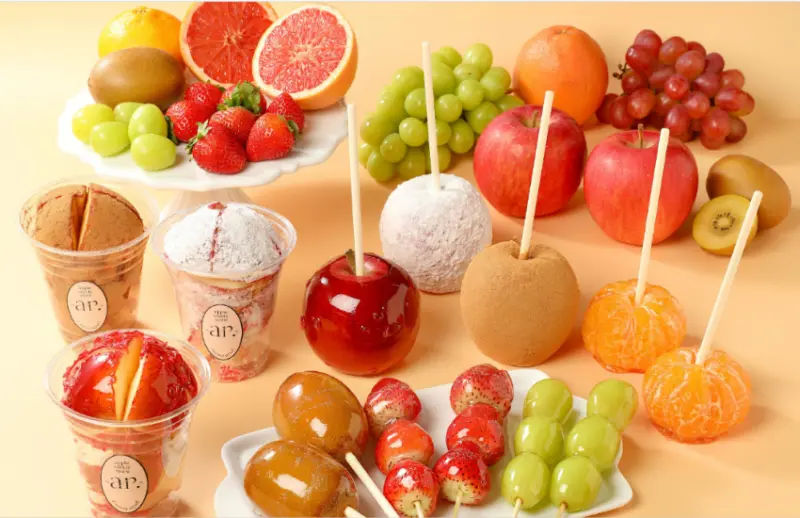 Fruits Candy ar.每到季節都會精選當令水果,製作水果糖。薄脆的糖衣包裹著新鮮水果,咬下去的酥脆口感絕對讓你難忘!蘋果糖有六種不同口味,可以依照心情選擇,而且切成方便入口的大小,特別適合邊走邊吃,是逛街時的完美零食!