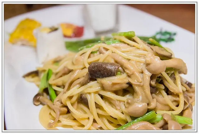 綜合野菇義大利麵是使用三種菇類當作主餐去搭配麵食,