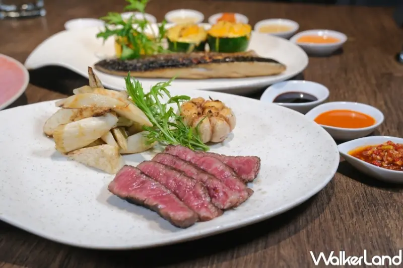 ▲吾居炭火餐酒烤物系列以組合擺盤呈現,增加用餐儀式感 / WalkerLand窩客島 張人尹 拍攝