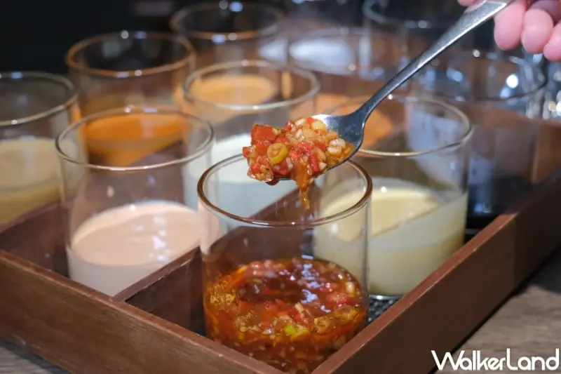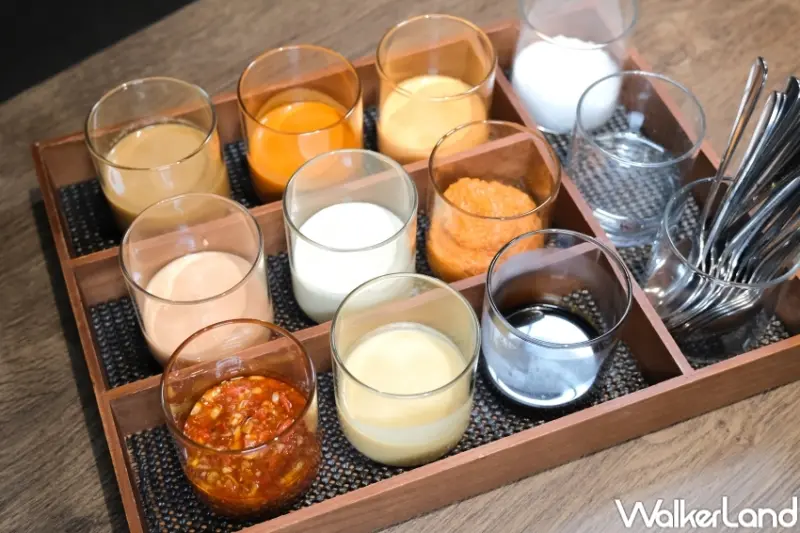 ▲東區餐酒館吾居炭火餐酒主打全新9種醬料,點烤物可以任選搭配醬料 / WalkerLand窩客島 張人尹 拍攝