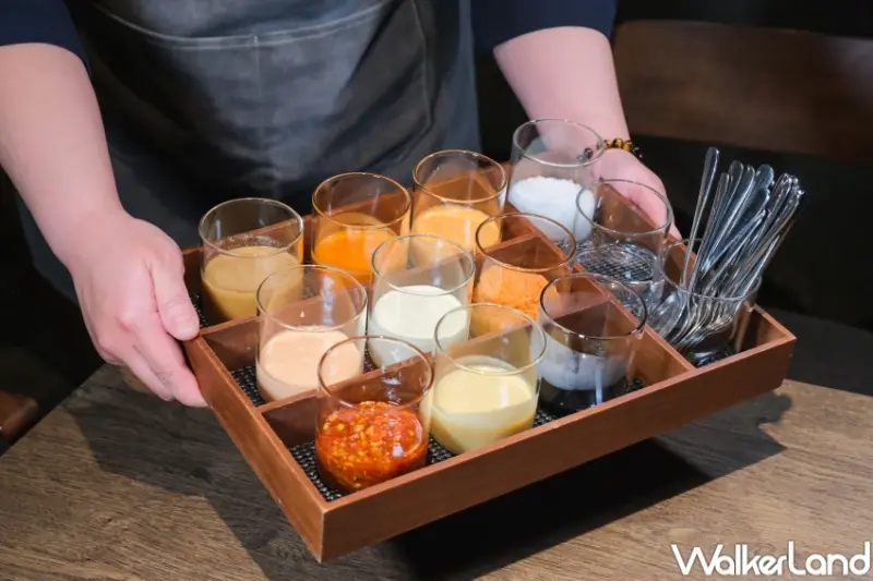 ▲吾居炭火餐酒主打全新9種醬料,吃得到A5宮崎和牛 / WalkerLand窩客島 張人尹 拍攝