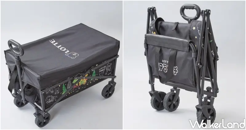 ▲家樂福獨家樂天小熊露營摺疊推車組,樂天小熊餅乾加露營推車限量開賣 / 家樂福提供、WalkerLand窩客島整理
