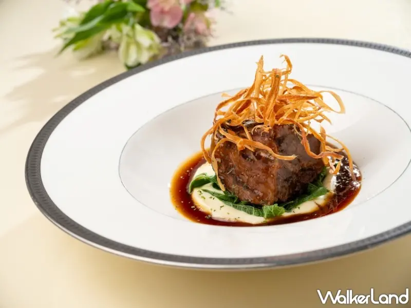 ▲文華Café「週末午間鮮.吃.吧」推出全新季節主餐「慢燉澳洲和牛牛頰」,奢選澳洲和牛牛頰肉質軟嫩細緻、入口即化,搭以燉煮濃縮而成的紅酒醬汁帶著甘甜果酸氣息,完美襯托和牛牛頰的醇潤風味 / 台北文華東方酒店提供、WalkerLand窩客島整理