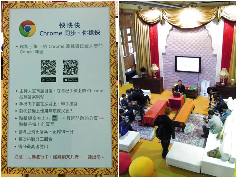 『Chrome』跟陌生人一起搶答,而且坐在這奢華又挑高的大客廳,實在是很舒胡~~~