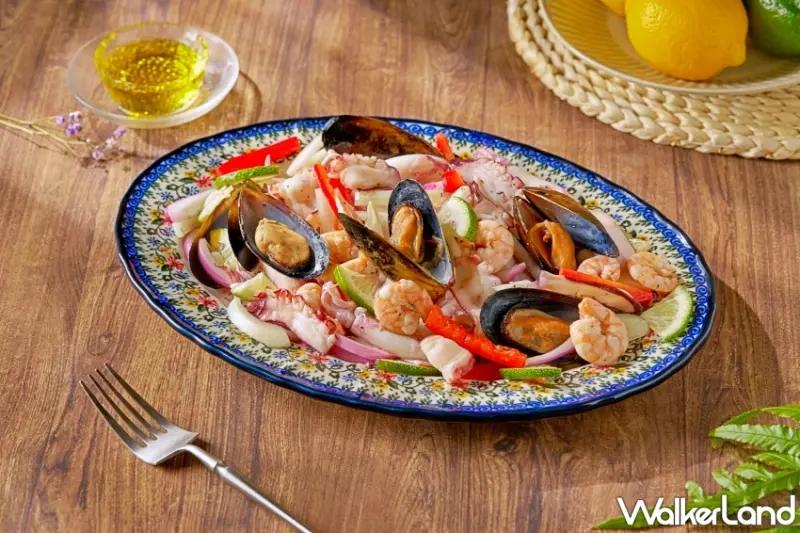 ▲「義式檸檬海鮮沙拉」酸香清爽,富有地中海風情 / 茹曦酒店Sunny Buffet提供、WalkerLand窩客島整理