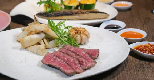 以「餐酒辦桌」概念重構辦桌記憶與台灣味,從象徵吉祥的「菱角麵包」、「烏金白玉」,到重現三杯雞印象的「三元及第」、酸甜融合的「五福臨門」,每道菜皆有意象命名與地方食材的文化對應。主餐包含牛排、豬排與海鮮三選,像是台式滷牛小排變身細燉風味的「輝室牛小排」,或是加入紫蘇藍莓紅酒醬的戰斧豬排,都展現了傳統台菜的創新樣貌,主餐的份量更是驚人,就是要讓大家吃超飽。