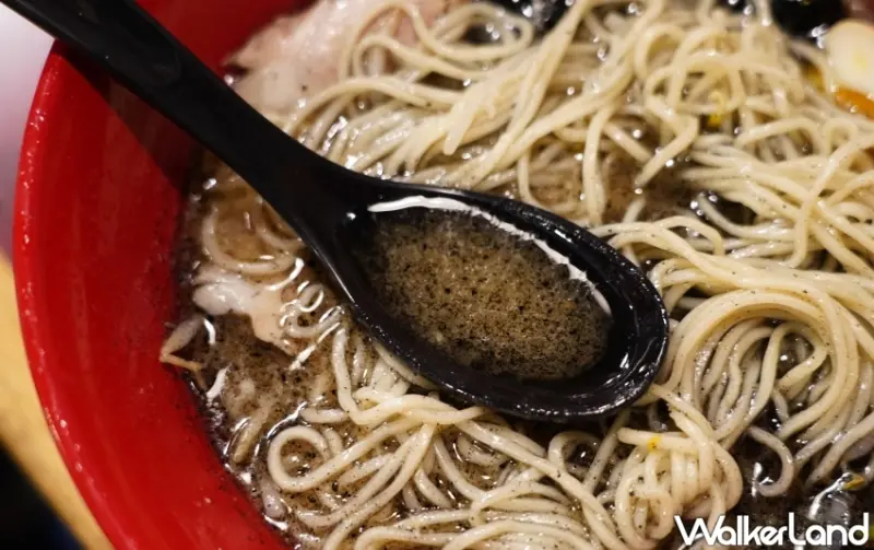 ▲琉家拉麵的琉焦蒜豬骨拉麵呈現近乎墨黑的色澤/ WalkerLand窩客島 楊婷雅 拍攝