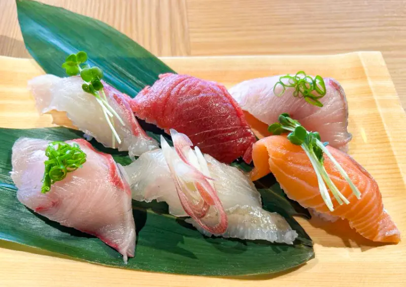 使用市場直送的新鮮本鮪製作的「大片壽司本鮪垂涎」,其大片魚肉幾乎遮蓋了底下的壽司飯。從油脂豐富的經典食材到時令特產,每一貫都由壽司師傅精心挑選,為顧客獻上極致的口感。![]()