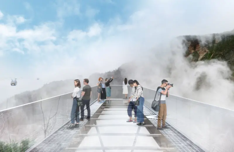 ▲延伸約11公尺、高約8公尺的全玻璃甲板,提供刺激的體驗。