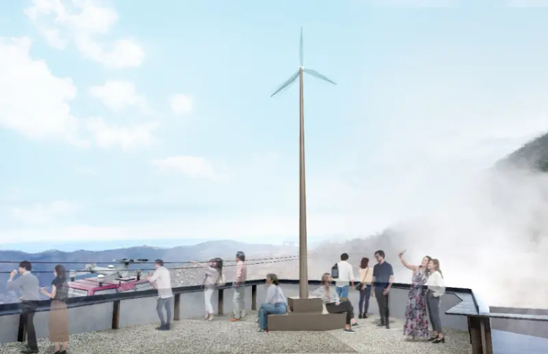 在風力發電機和火山監測攝影機周圍設有站立式吧台,遊客可以一邊享用在商店購買的輕食,一邊欣賞大涌谷的美景。這裡是拍攝最接近纜車照片的絕佳位置!天氣晴朗時,還能遠眺廣闊的大地、相模灣和東京市中心的高樓群,感受愜意的開放感。![]()