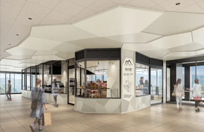 站內一樓的「谷之市集」商店將提供富有箱根特色的紀念品,以及與神奈川當地有淵源的產品,還有以展望區壯闊景觀為靈感的原創甜點和飲品等輕食。遊客可以將食物帶到展望平台上,一邊欣賞美景一邊享用美食。