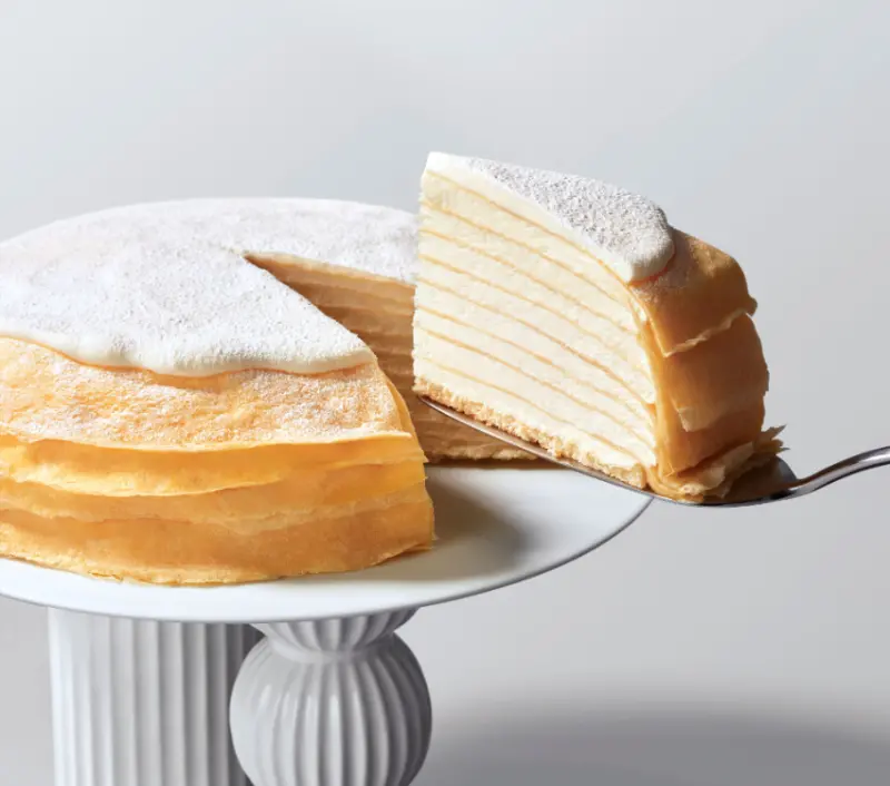 經過團隊無數次的反覆試製,終於達成了將薄餅皮與奶油完美平衡的8層結構,創造出這款全新的「MILK CREAM」千層蛋糕。它不僅能讓招牌奶油的風味充分釋放,視覺上也呈現華麗且絕妙的平衡感。![]()