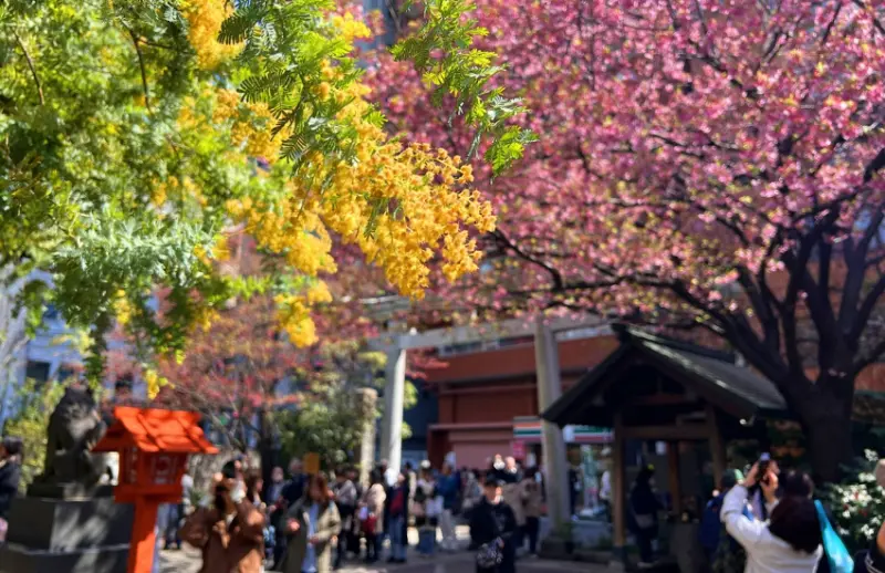 東京的春天總是熱鬧非凡,賞櫻名所人聲鼎沸,藏前神社從不在熱門清單上,但只要看過一次那株老櫻花樹與金合歡同時綻放的模樣,一定能讓你念念不忘。![]()