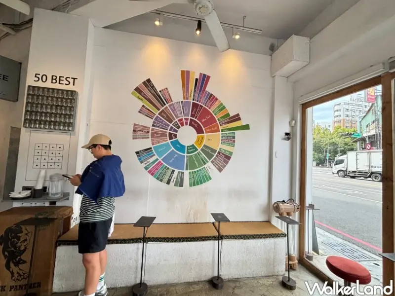 ▲牆上的咖啡風味輪,是Tamp Temper Taichung Coffee打卡熱點/ WalkerLand窩客島 楊婷雅 拍攝
