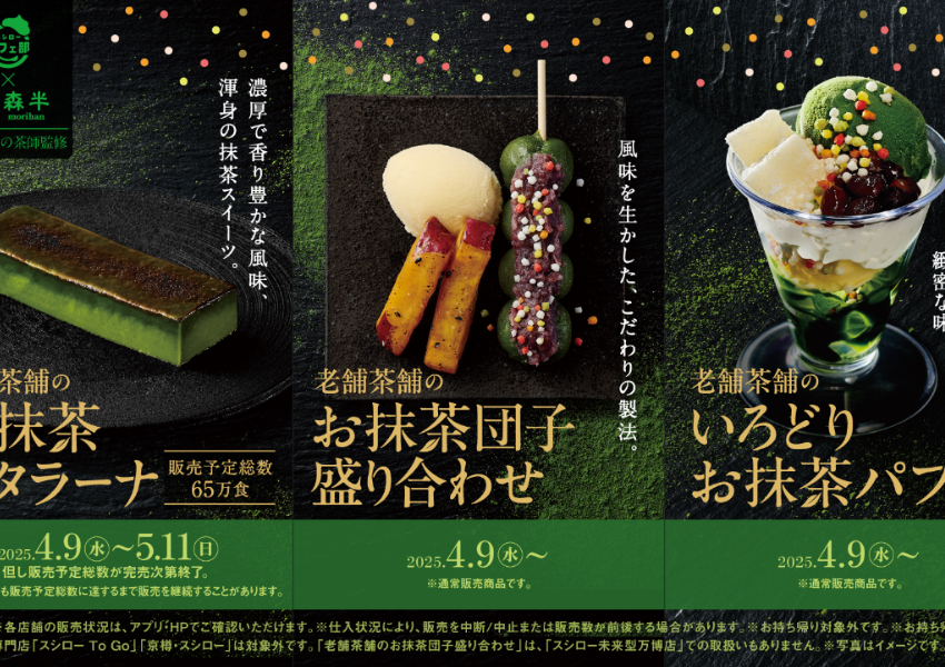 ▲日本壽司郎「森半抹茶甜點」攜手京都宇治百年茶鋪登場 / スシロー提供、WalkerLand窩客島整理