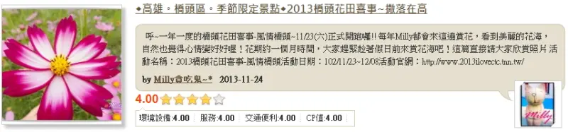 每年Milly都會來這邊賞花,看到美麗的花海,自然也覺得心情變好好喔!