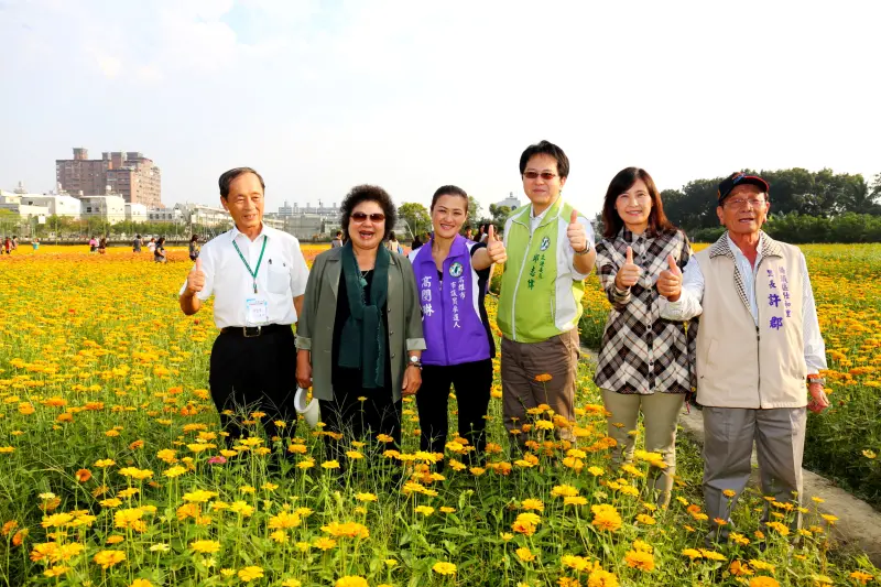 橋頭「花田喜事」花海週末開幕迎賓,高雄市長陳菊今(24)日也前往賞花,大讚橋頭花海在橋頭區里的努力下,堪稱高雄花海典範,每年都成功吸引成千上萬人潮,去年統計達60萬人次,盼今年賞花人潮更勝去年人次量。