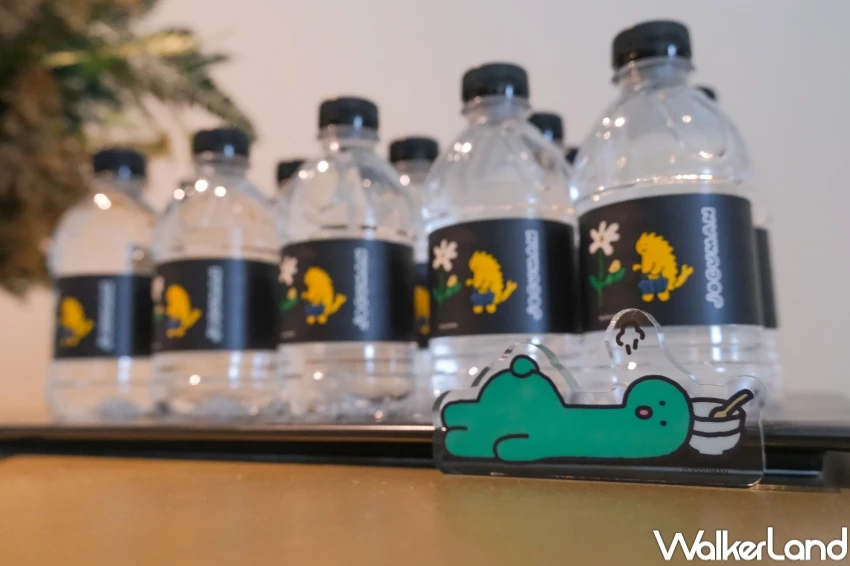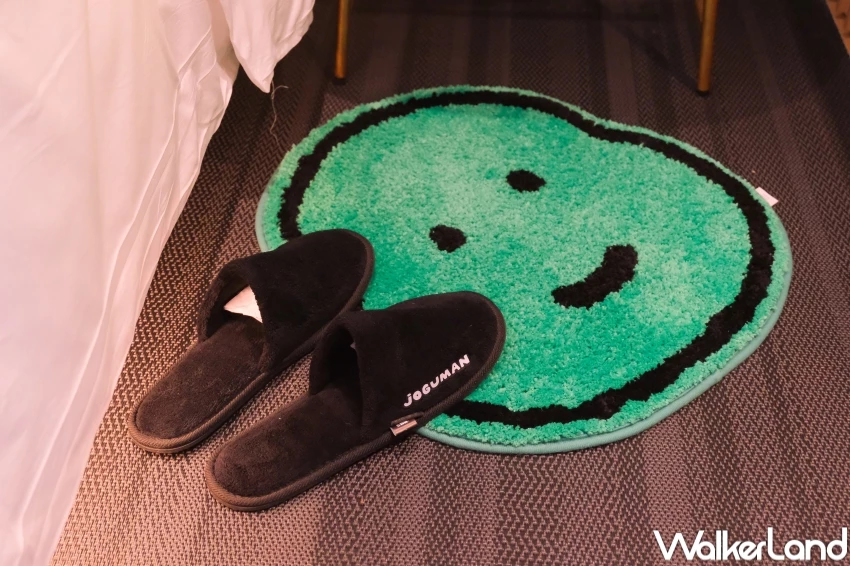 這次專案最讓人期待的,就是入住即贈的「潮黑房客禮包」,內容包含只送不賣的限定版「JOGUMAN奢享假期」絨毛浴袍玩偶、晚安好夢眼罩、雨後天晴遮陽傘、潮黑出走托特包與造型拖鞋,還有兩瓶草食動物俱樂部主題礦泉水與完整盥洗組。從實用小物到收藏週邊,通通一整套帶回家。