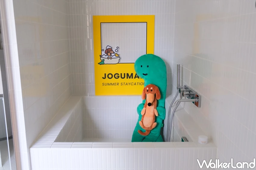 這次在金普頓大安,進房前就能看到超萌JOGUMAN,電梯廳有巨型BRACHIO氣偶,並且整層樓化身草食動物俱樂部藝術迴廊,展出作者簽名小物、走廊牆上更變成JOGUMAN草食動物夥伴的主題牆面,讓粉絲走進JOGUMAN的世界。此外,在客房內也有許多細節擺設,地毯、掛畫到抱枕,不只讓BRACHIO化身陪睡員,還特別附上打卡版讓粉絲們拍不停。