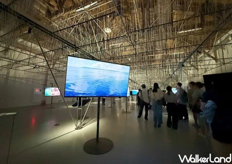 松菸4號倉庫「接海之島」透過懸掛在空中的農用棚架、漁繩,象徵台灣四面環海的地理特性,呈現人文與社會的多元樣貌,展場中以電影、紀錄片、攝影與書籍等媒介,呈現台灣島嶼上的人們在不同時代下的生活記憶與文化;5號倉庫「臺灣萬水」集結來自台灣各地文創小物,從漁港美食、香氛、碗具都有,入場時記得先拿超台味的購物勺,再進展區挑選文創小物。![]()