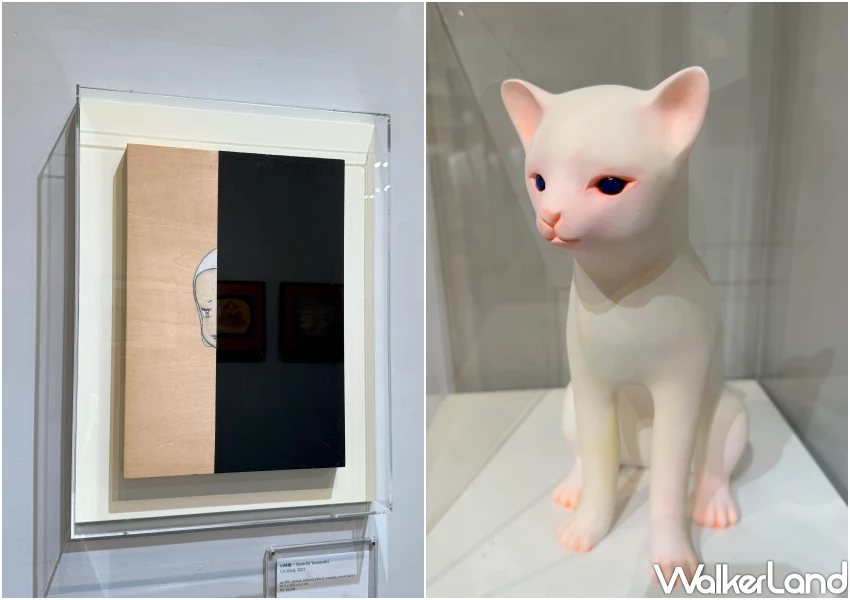 除了繪畫作品,展場中也展出許多版畫、陶瓷、雕塑創作,像是村上隆公仔、六角彩子使用繽紛的色彩創作的小女孩主角版畫,藝術家優卡則運用不同色調創作出5件小女孩陶瓷作品,展示區還特地在清潔工人形雕塑旁擺上玻璃瓶,讓整體畫面更生動有趣;另外,飯川雄大曾多次展出「藏在樹後方的巨大粉紅貓」,本次華山卡哇伊展則展出了縮小版的粉紅貓,讓你近距離體驗這可愛的粉紅貓咪作品,近期來華山就衝多納藝術館,免費逛卡哇依展。![]()