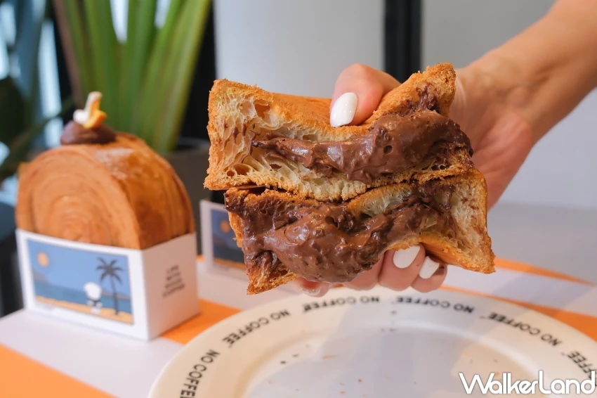 這次NO COFFEE與聖沛黎洛合作,甜點部分以氣泡水果飲為靈感,推出2款限定可頌,其中包含「柚香抹茶可頌」,全黑可頌外皮,內餡是日本小山園抹茶搭配柚子乳酪餡,另一款「橙光可可可頌」則是甜橙氣泡果香、苦甜巧克力風味一次吃到,圓形造型更是讓粉絲們拍照打卡超可愛。![]()