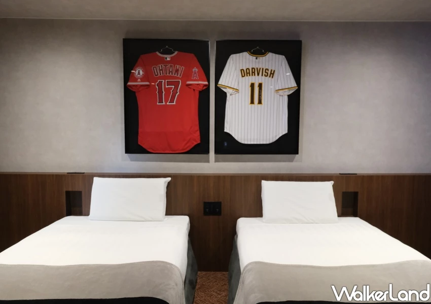 tower eleven hotel最受矚目的就是以達比修有與大谷翔平主題的套房,房內裝飾著球衣、插畫與專屬設計,讓球迷一進房就被滿滿的棒球氛圍包圍。接待大廳同樣精彩,展示了陽岱鋼的簽名球、大谷翔平使用過的球具,處處都是珍貴的歷史印記。入住期間還能使用館內的「tower eleven onsen & sauna」,在天然溫泉與木質球棒設計的桑拿房中放鬆身心。要特別注意的是tower eleven hotel非常熱門,如果想要成功訂房建議要提早規劃。